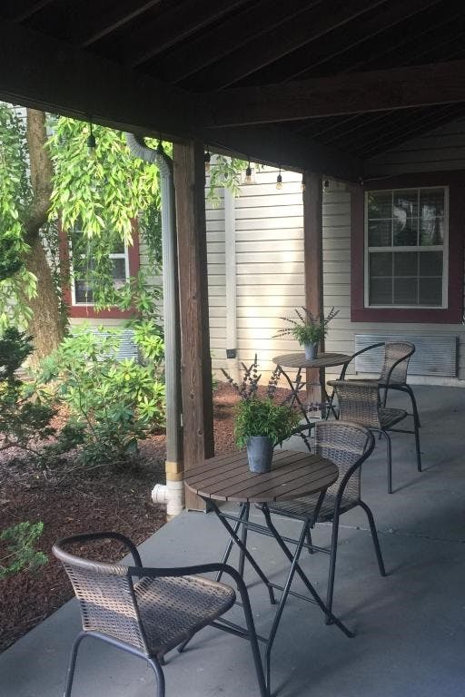 Handcrafted Amish rocking chairs adorn our porches.